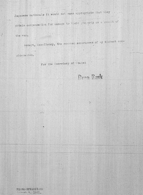 1951年8月10日 国務次官補(ラスク)から韓国大使への回答